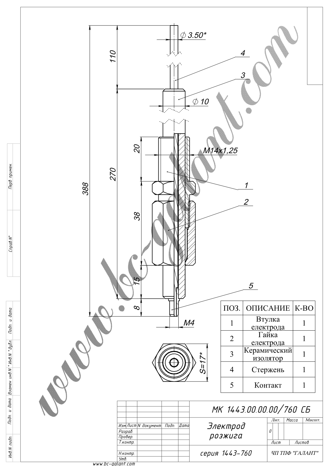Електрод розпалу серії 1443-760 з ізоляцією використовується для розпалу і контролю полум'я газових пальників.