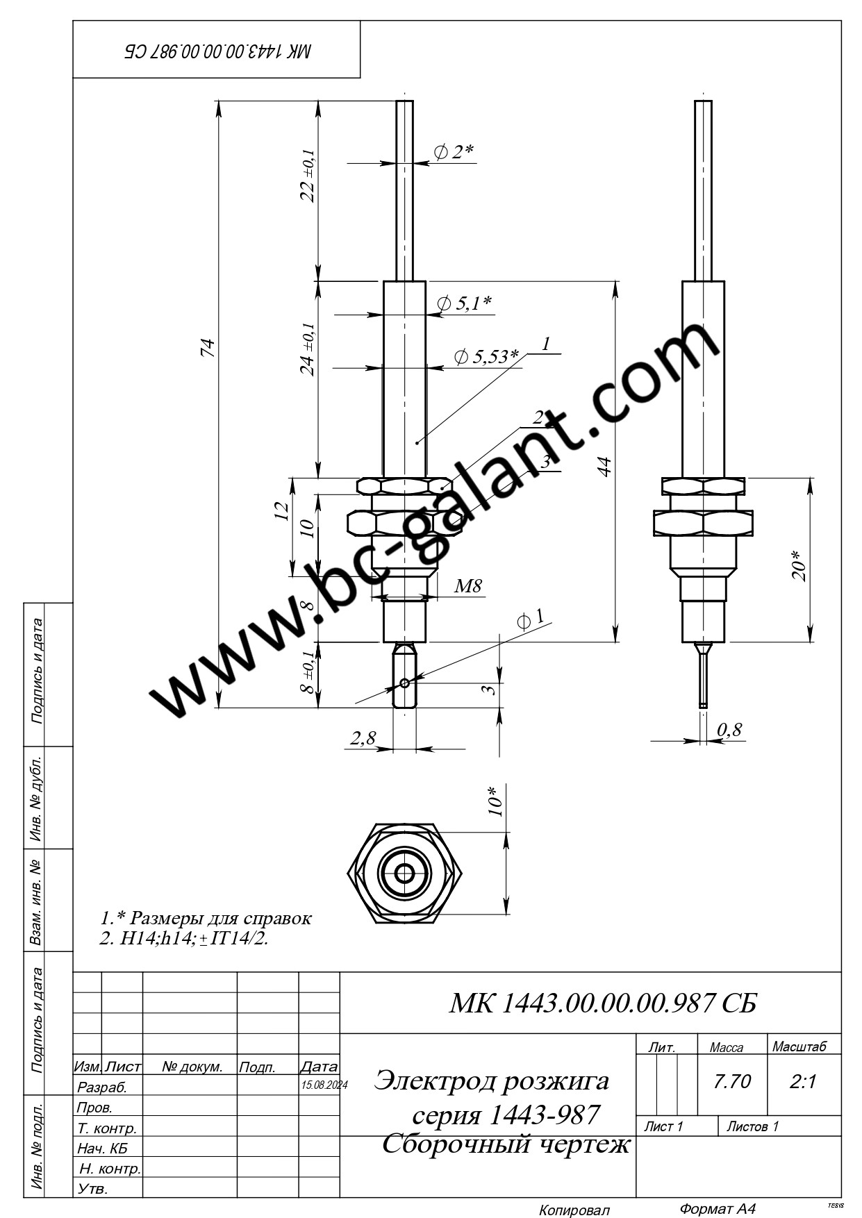Електрод розпалу серії 1443-987 з ізоляцією використовується для розпалу полум'я газових пальників.