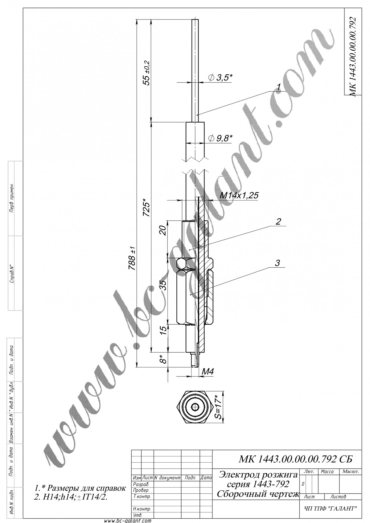 Електрод розпалювання MK 1443.00.00.00.792