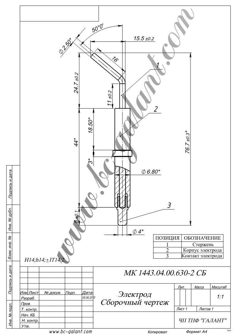 Іскровий електрод використовується для запалювання газового палива в газовому обладнанні. Процес розпалювання здійснюється іскровим перекриттям високої напруги. Використовується в блоках електродів розпалу і контролю полум'я код 1443-630