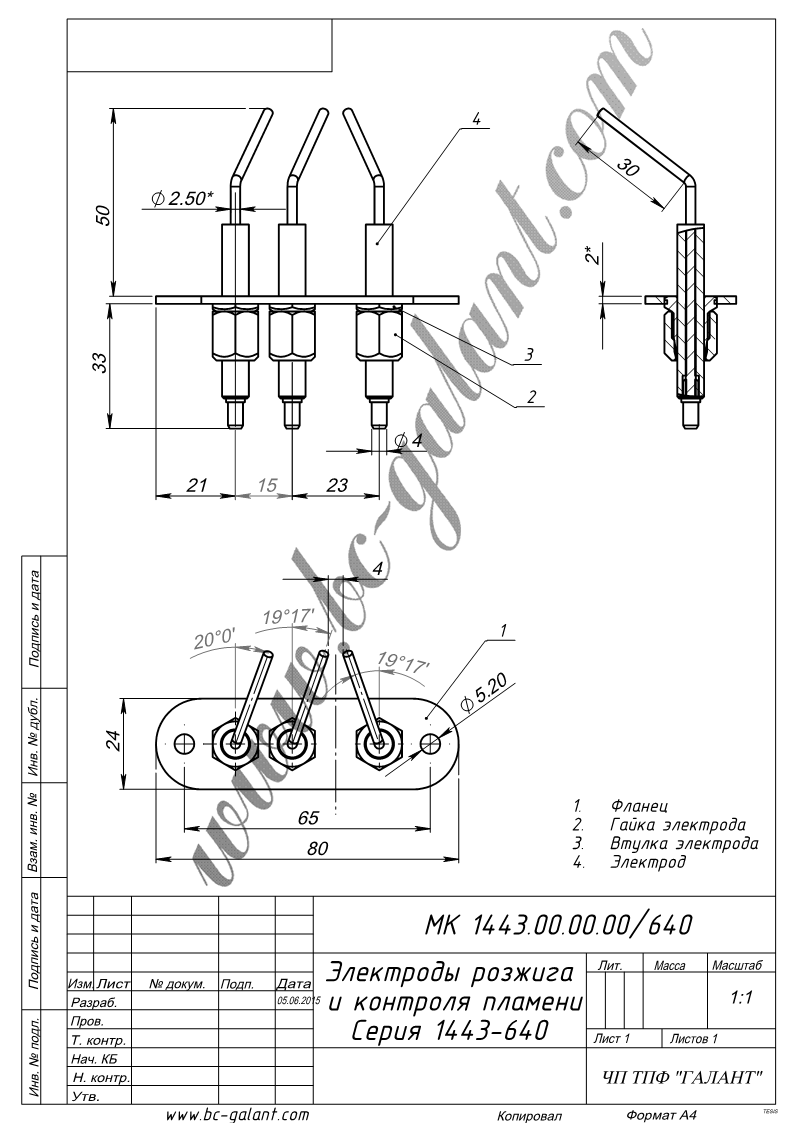 Блок електродів розпалу и контролю полум'я