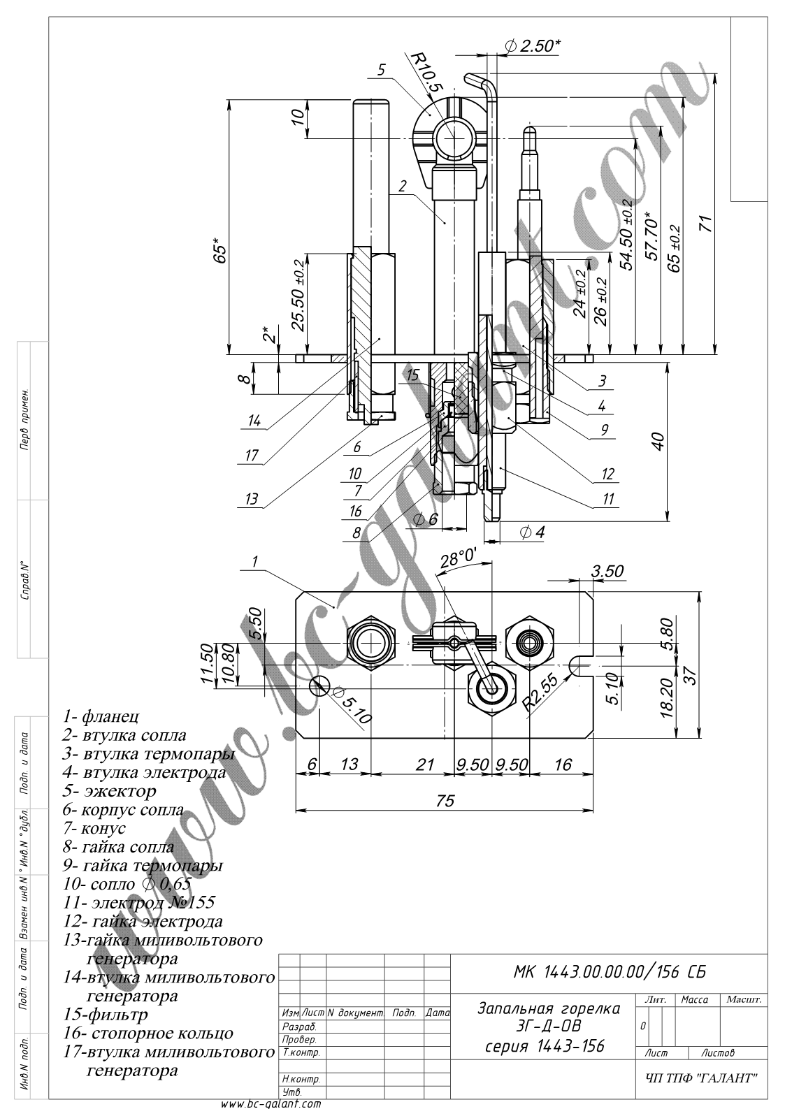 Пілотний пальник ЗГ-Д-ОВ серія 1443-156