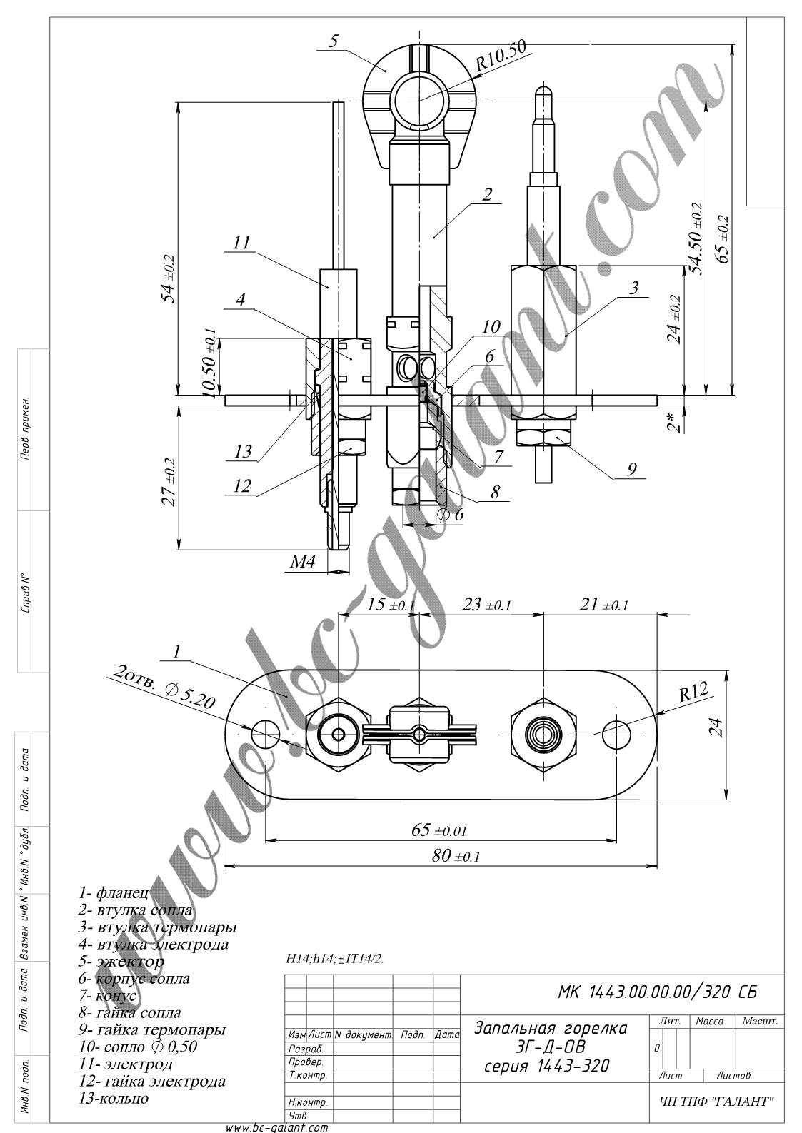 У зборі, 3 факела, без електрода розпалювання, інжектор 0,50мм (100-002), приєднання газу 6мм, має отвір для приєднання термопари.