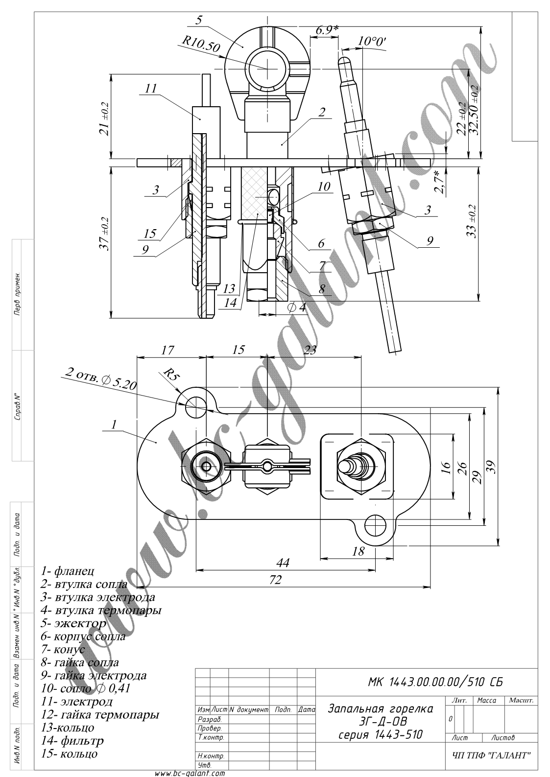 У зборі, 2 факели, без електрода розпалювання, інжектор 0,41мм (100-001), приєднання газу 4мм, має отвір для приєднання термопари.