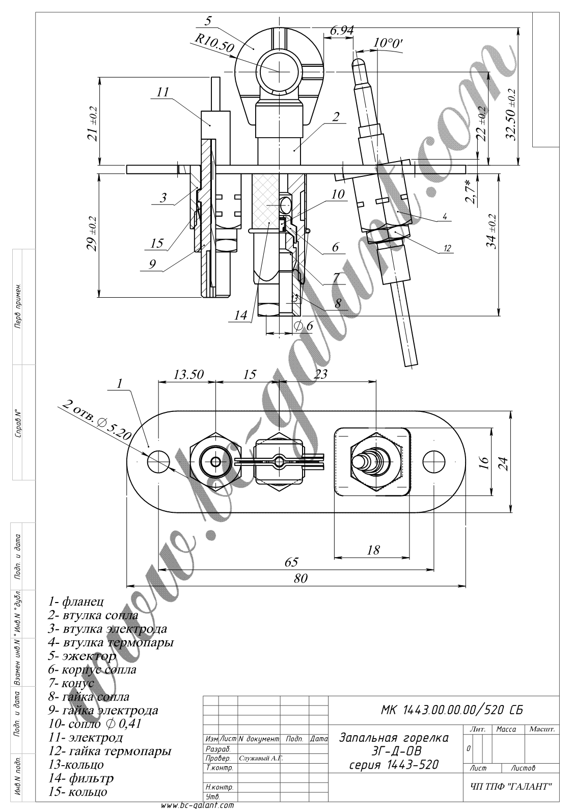 У зборі, 2 факели, без електрода розпалювання, інжектор 0,41мм (100-001), приєднання газу 4мм, має отвір для приєднання термопари.