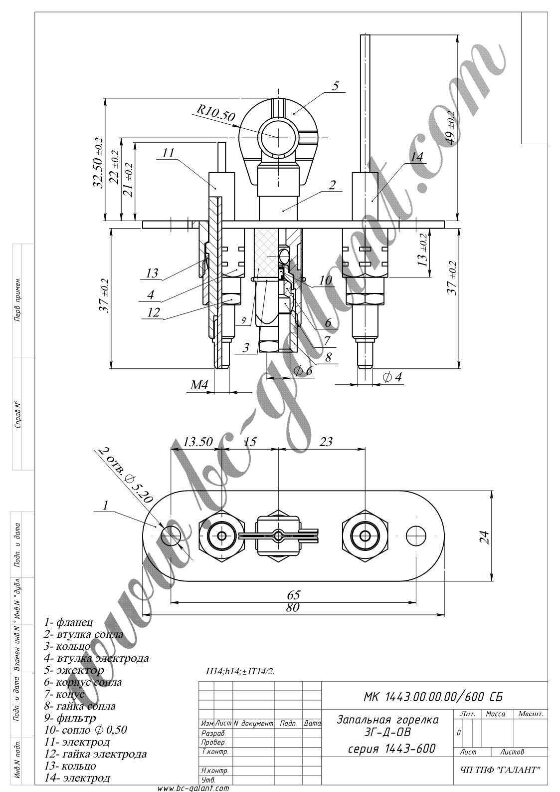 Ціна пілотного пальника ЗГ-Д-ОВ серія 1443-600 вказана без електродів (грн. з ПДВ)