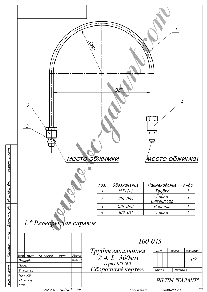 Трубка запальника діаметр 4мм, L=300мм, серія SIT 160