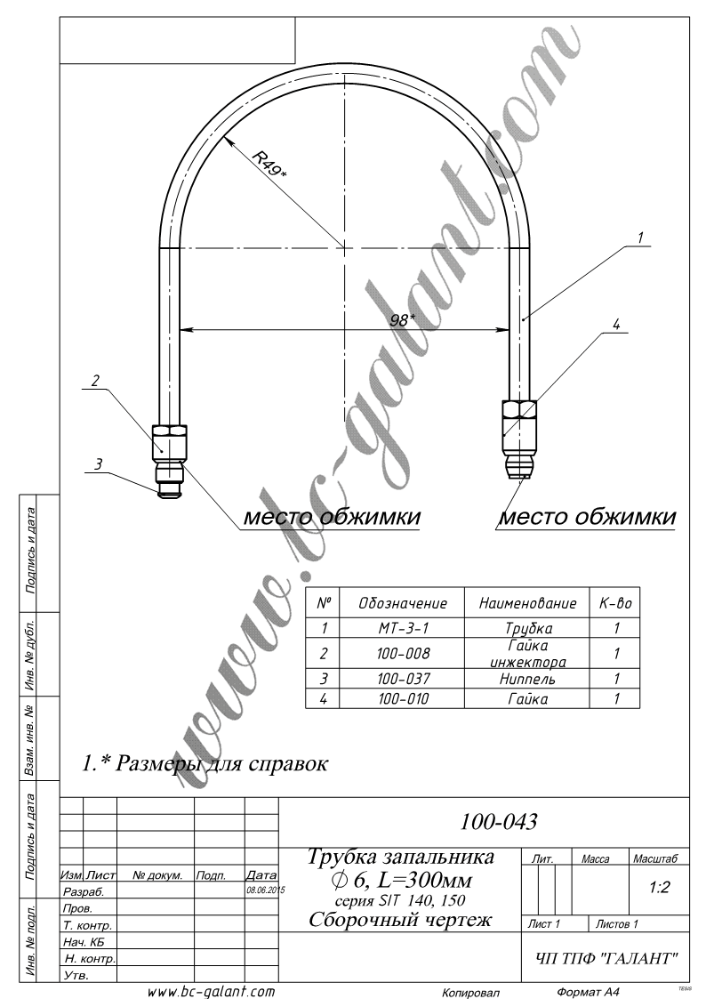 Трубка запальника використовується для пилотного пальника серії SIT 140, 150.