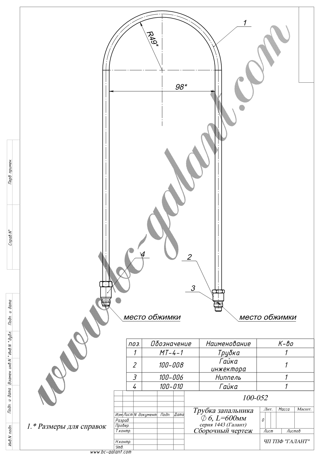 Трубка запальника використовується для пилотного пальника серії 1443 (Галант).