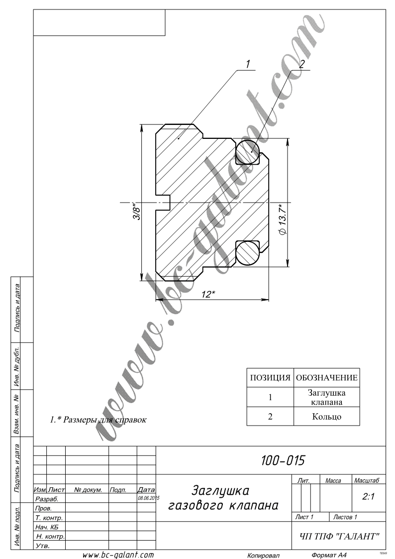 Заглушка клапана EUROSIT 3/8 (код: 100-015)